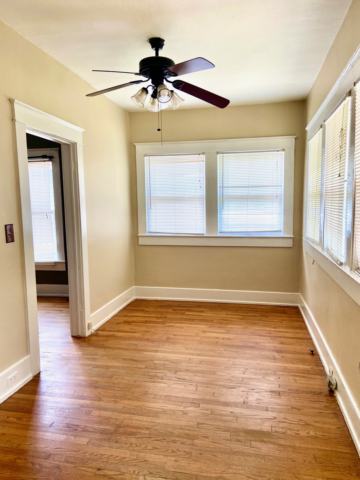 Home for lease in Glen Iris / Southside and convenient to UAB, Downtown Birmingham, Samford University and several major hospitals. 3 bedrooms (3rd bedroom must be entered in by one of the other bedrooms) and 1.5 baths. Large Living room and separate dining room with built in China cabinet. Large Kitchen with lots of cabinets and counter space, and appliances. Large laundry room with extra storage. Hardwood floors throughout. Deck in the back overlooking a large level fenced backyard. Covered and uncovered front porch great for relaxing.